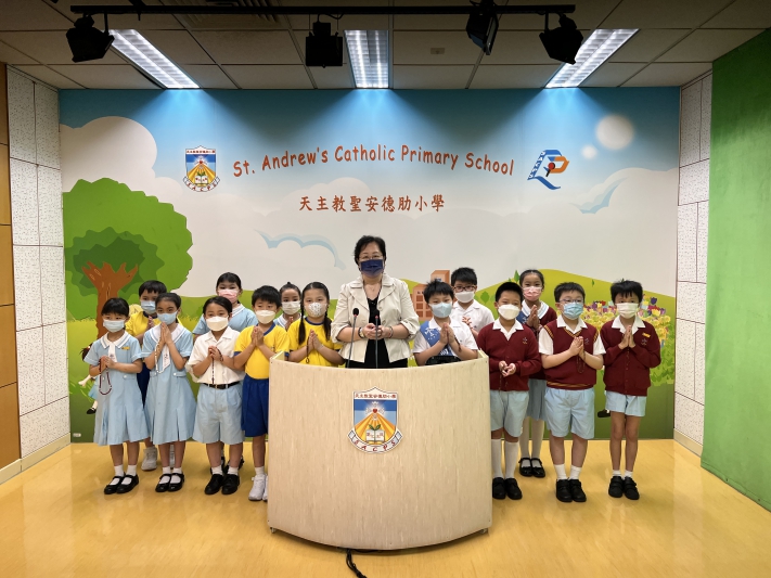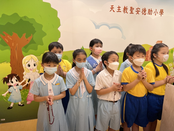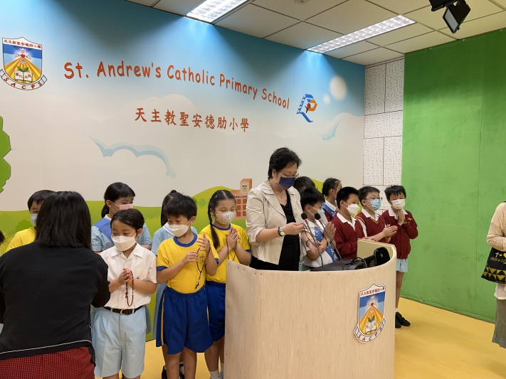 校長與三年級公教生唸玫瑰經