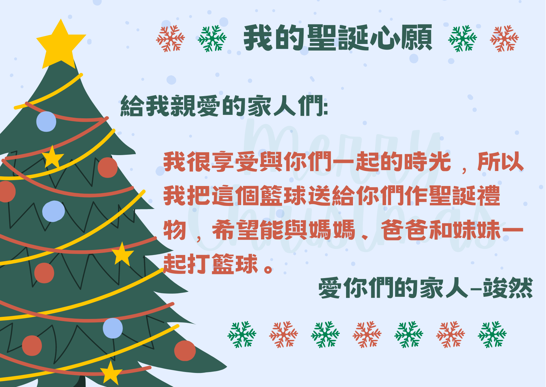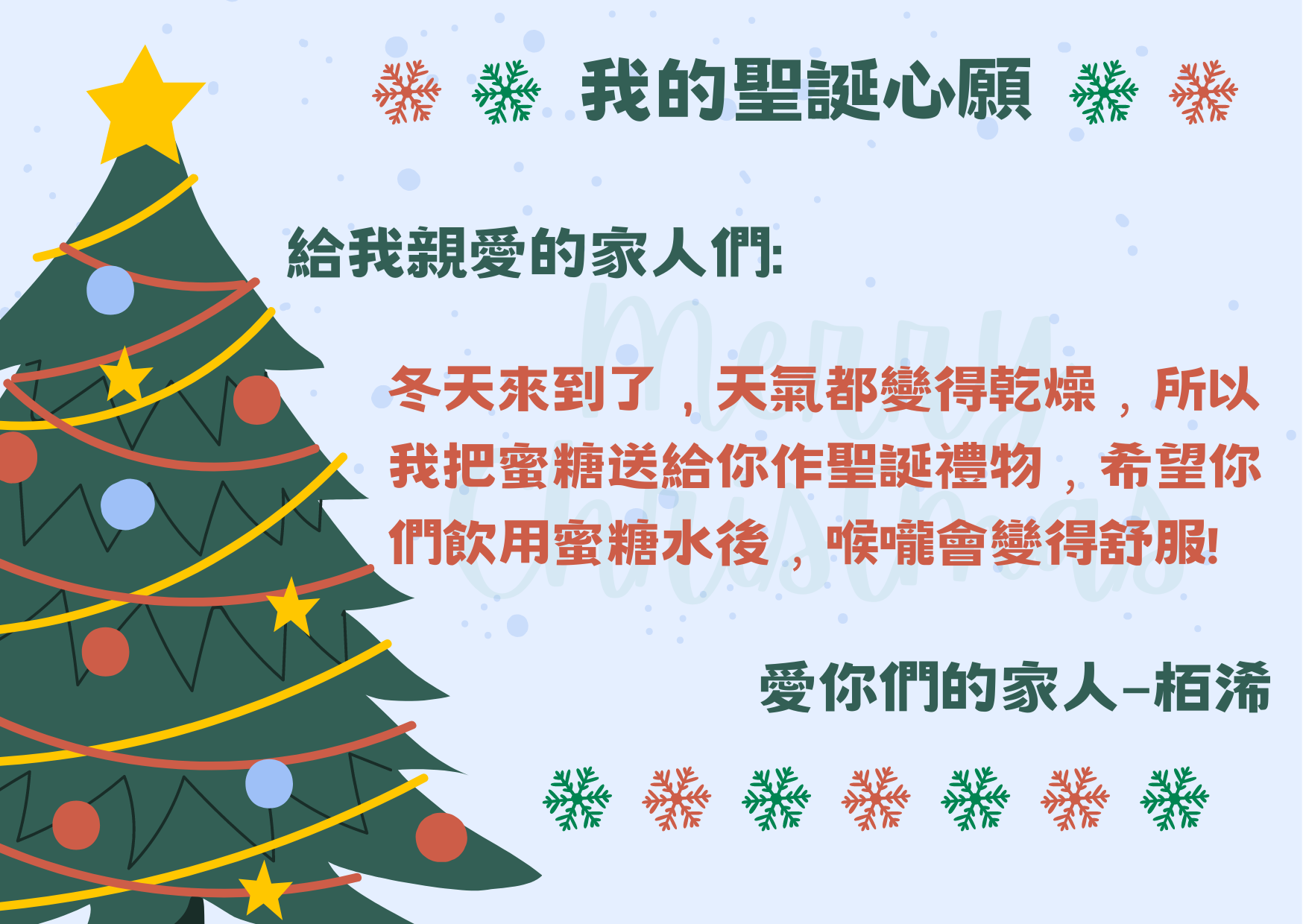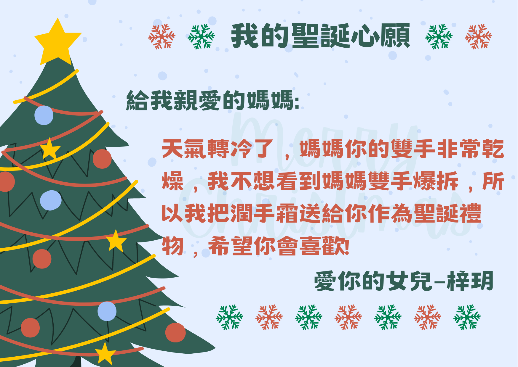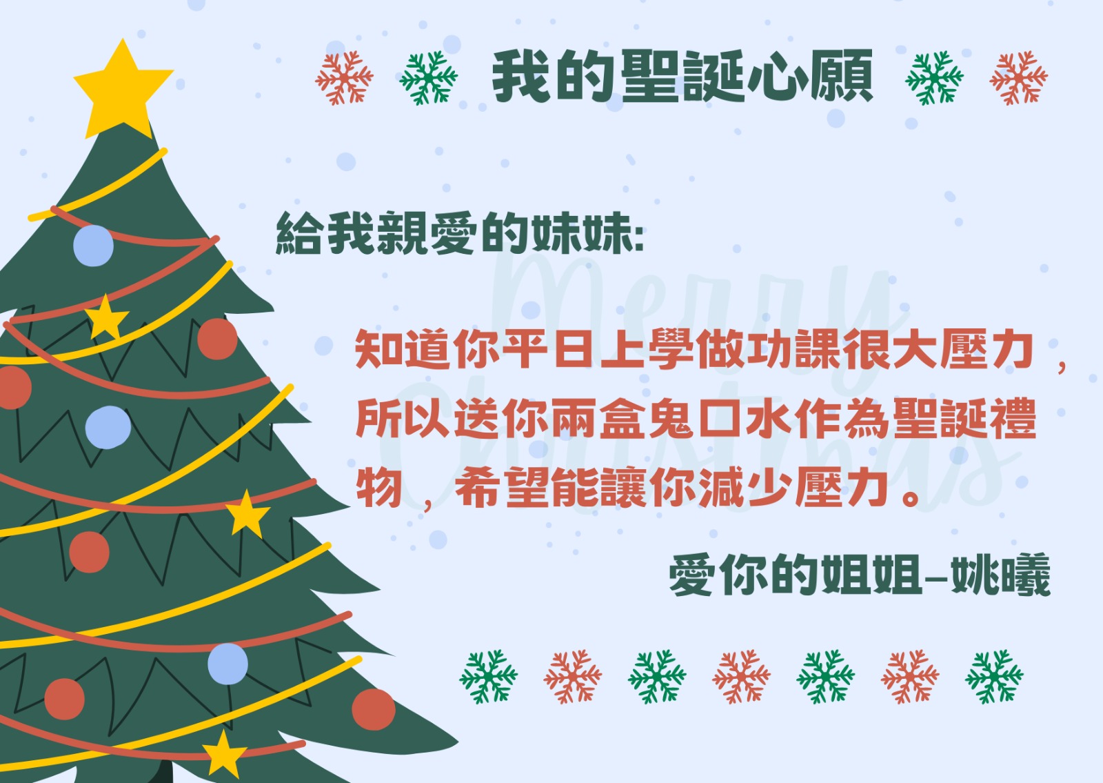 再次恭喜以下學生透過「 我的聖誕心願」實現願望,將愛傳給家人,現與大家分享他們的喜悅!