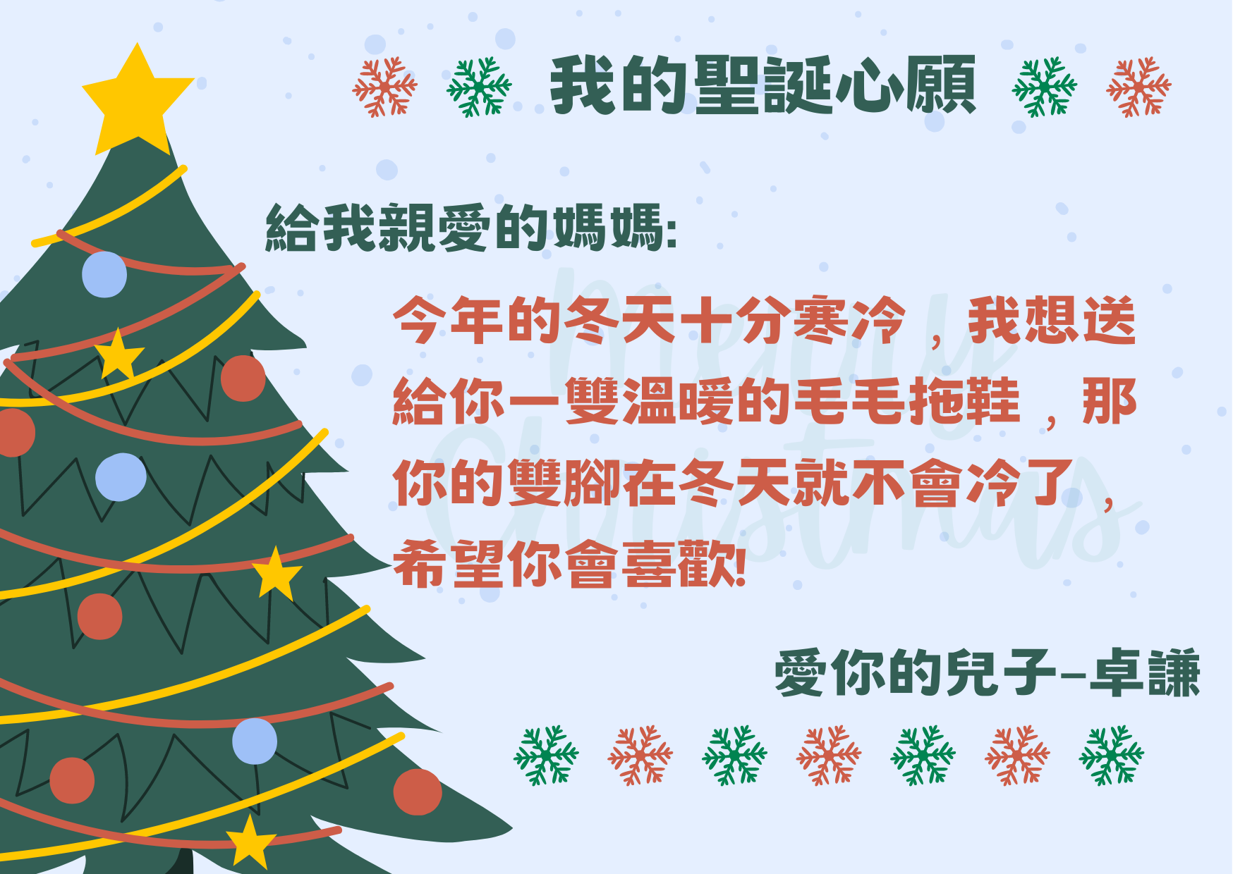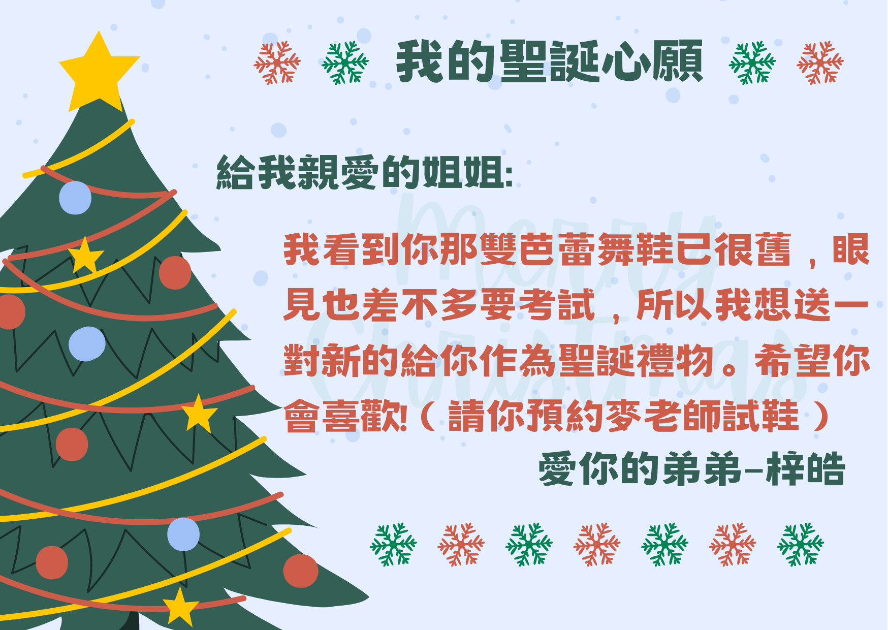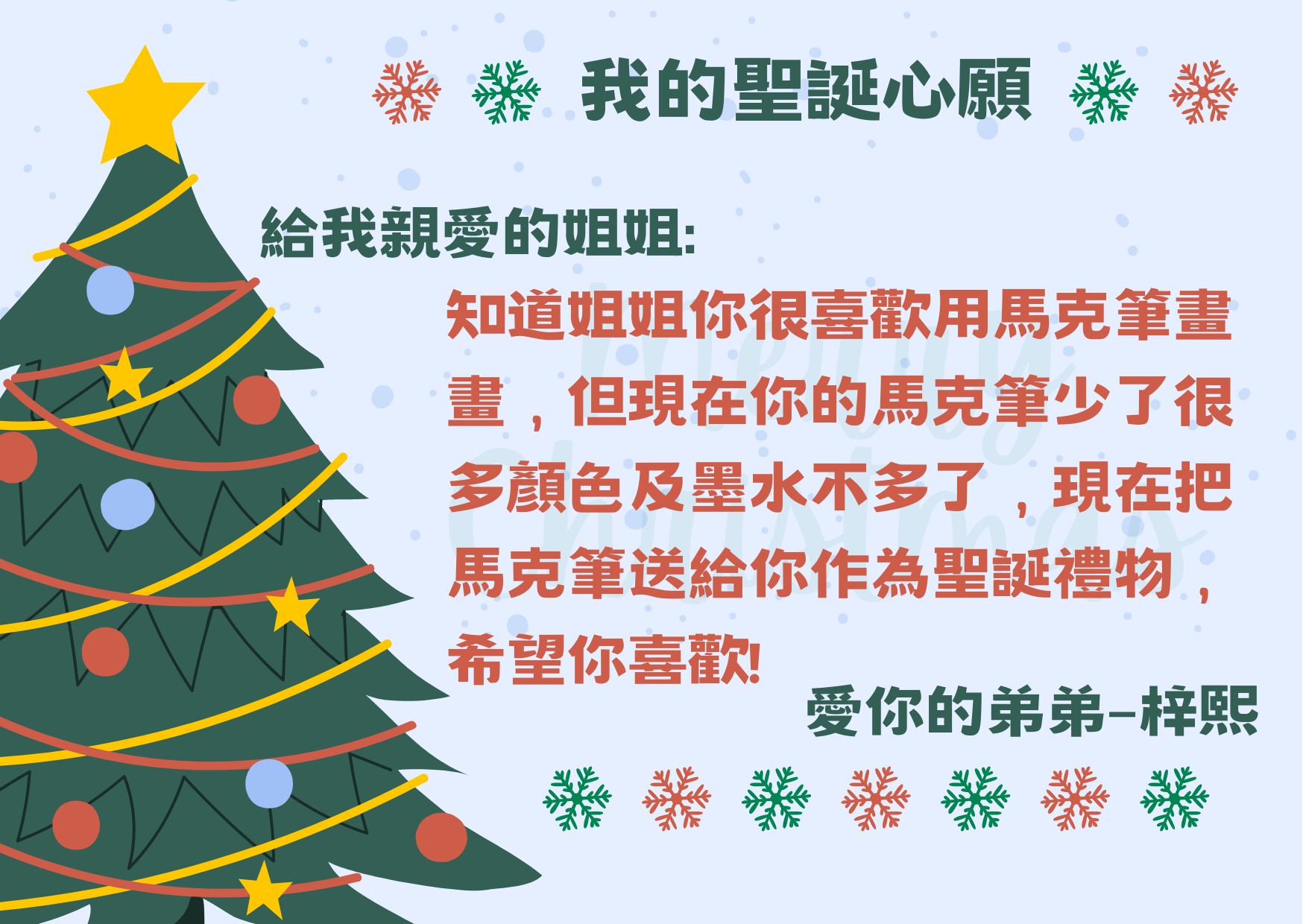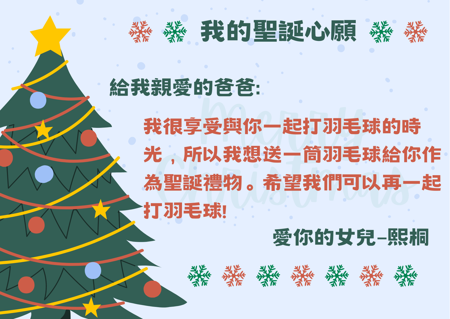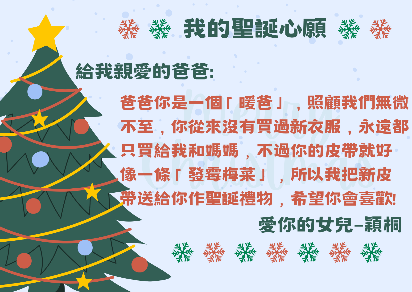 再次恭喜以下學生透過「 我的聖誕心願」實現願望,將愛傳給家人,現與大家分享他們的喜悅!