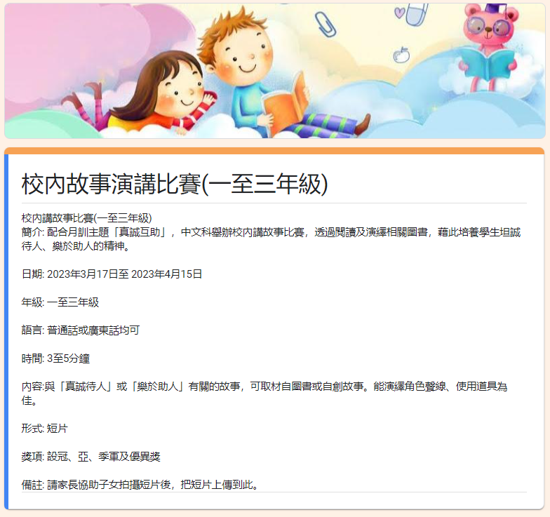 校內故事演講比賽(一至三年級)