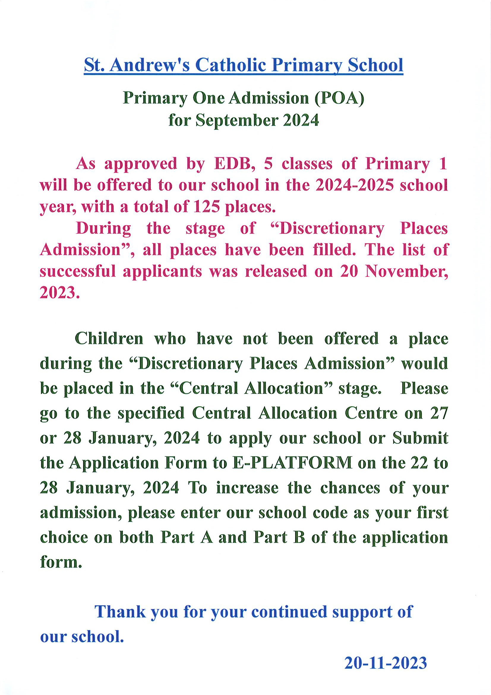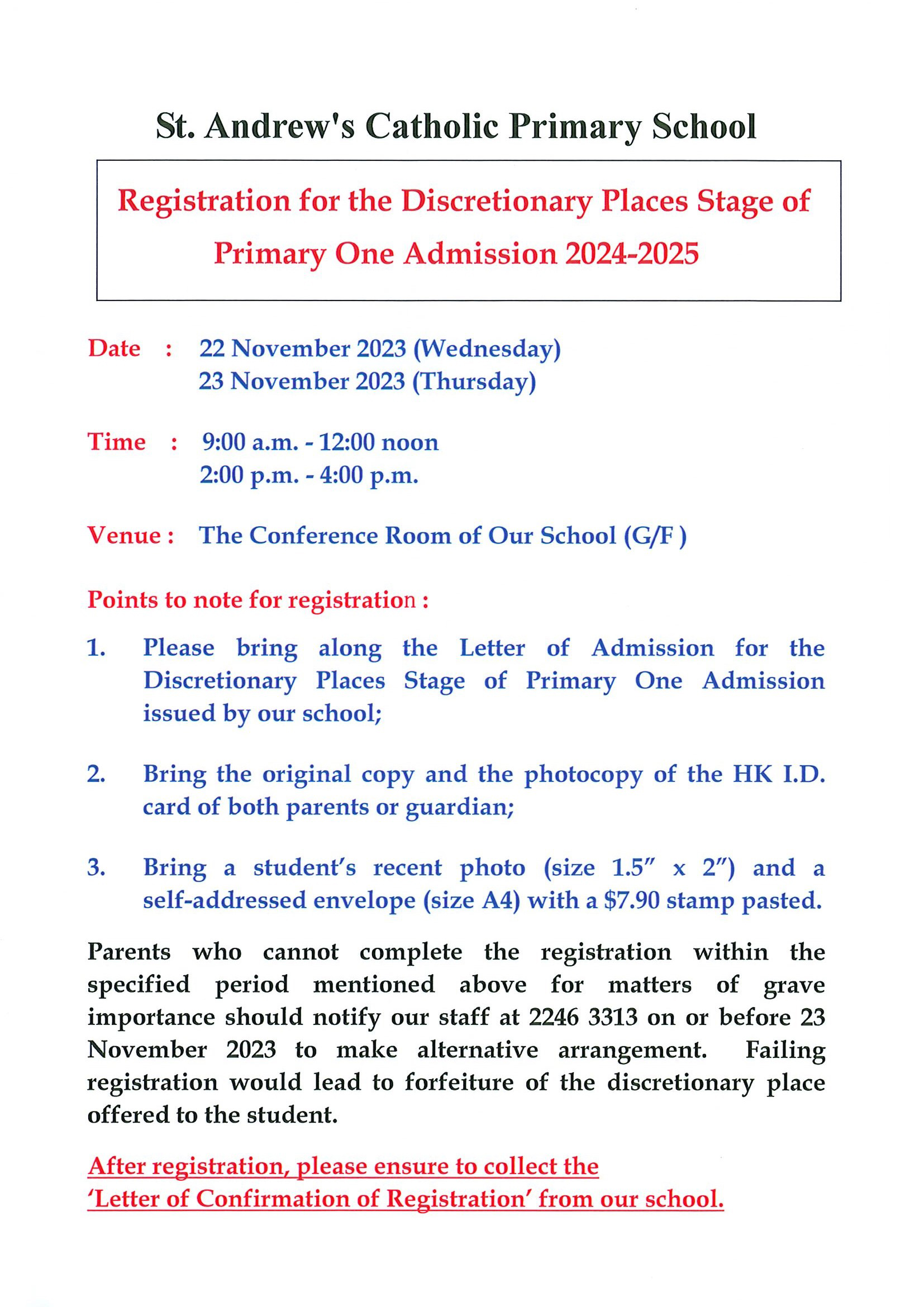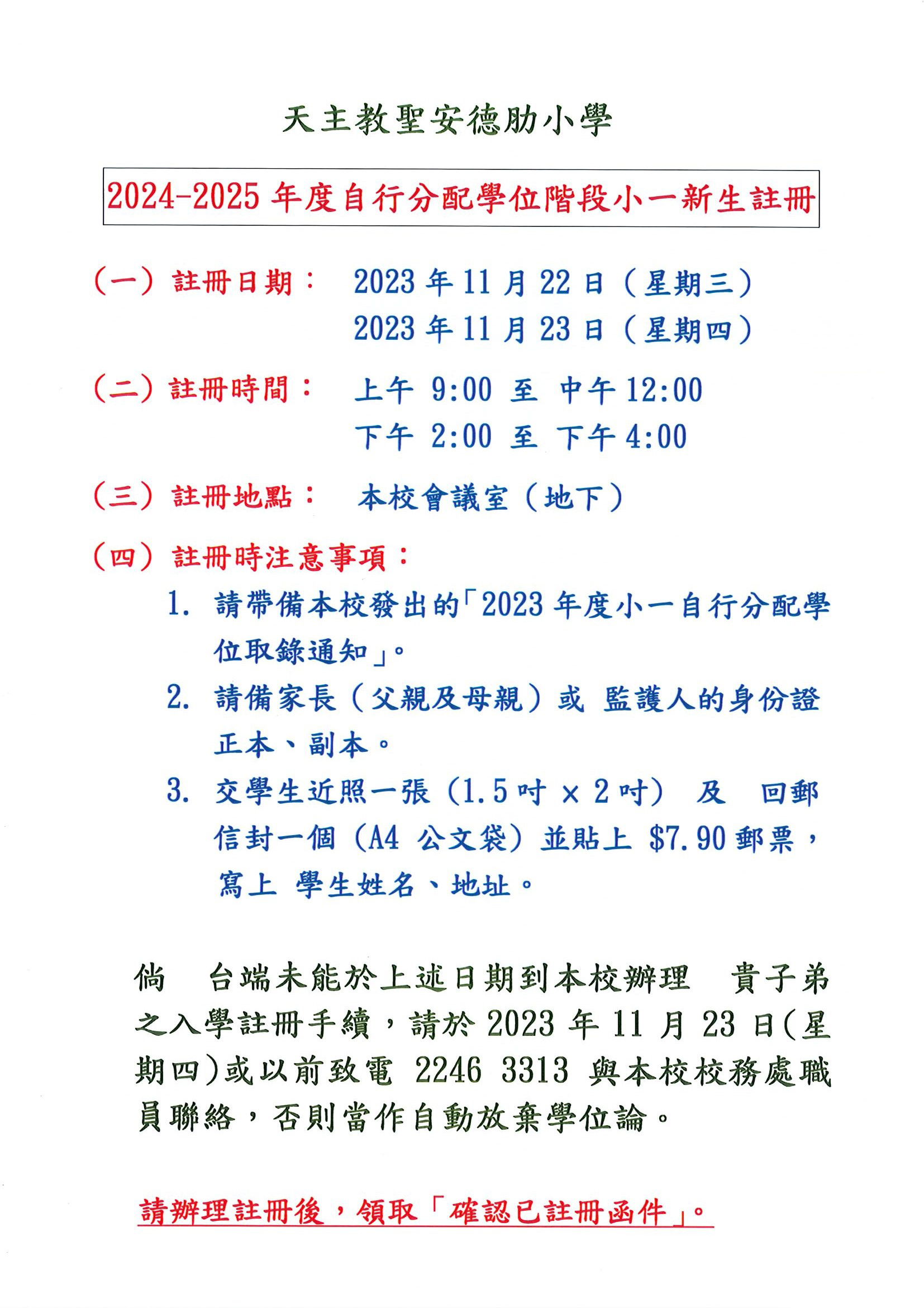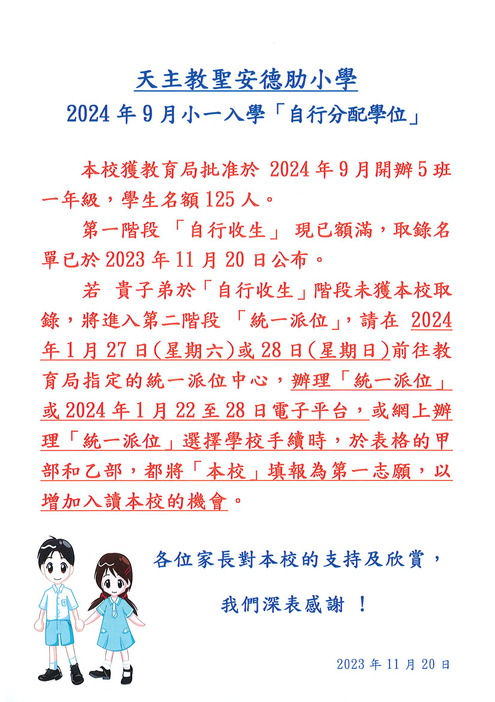 2024年9月小一入學「自行分配學位」